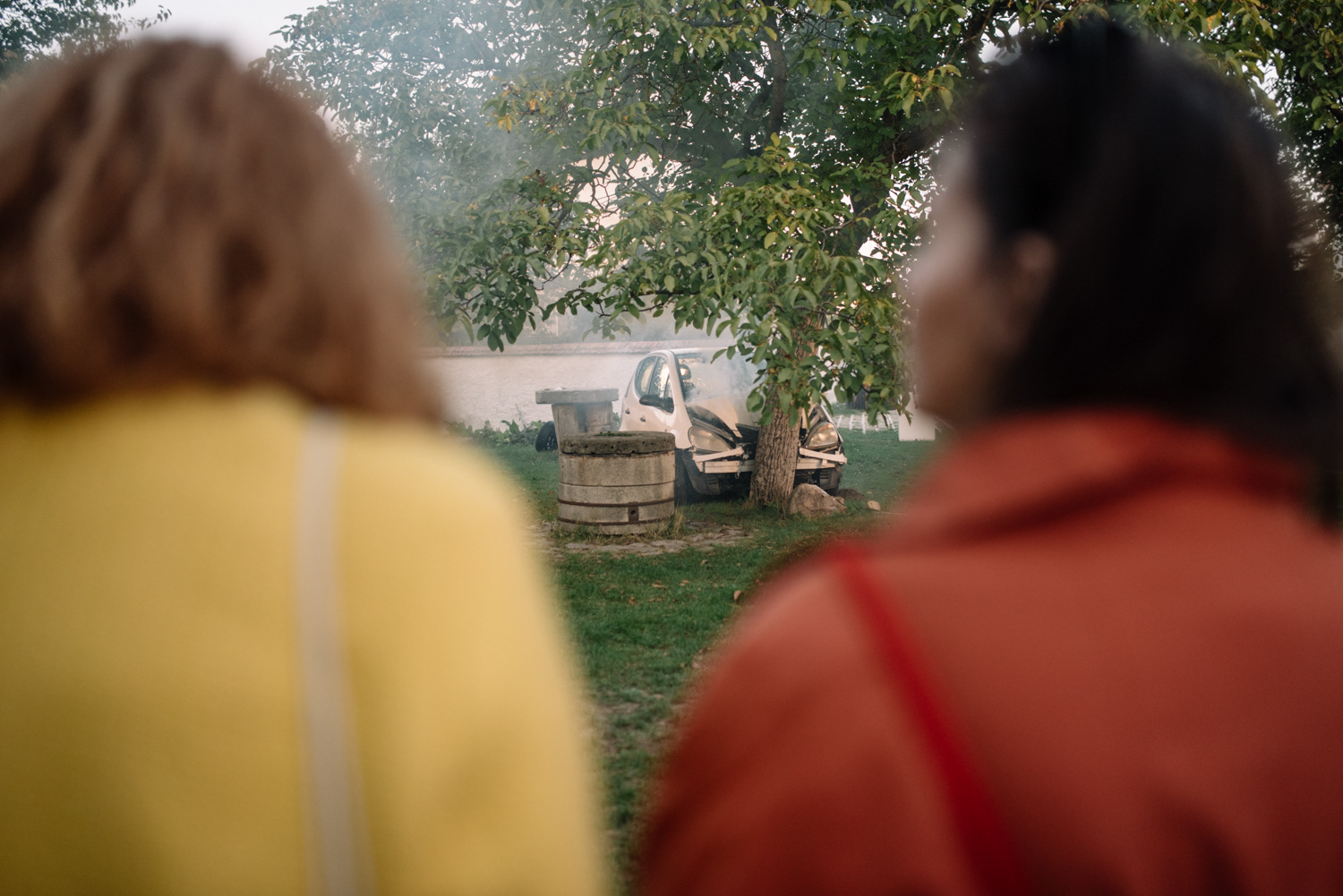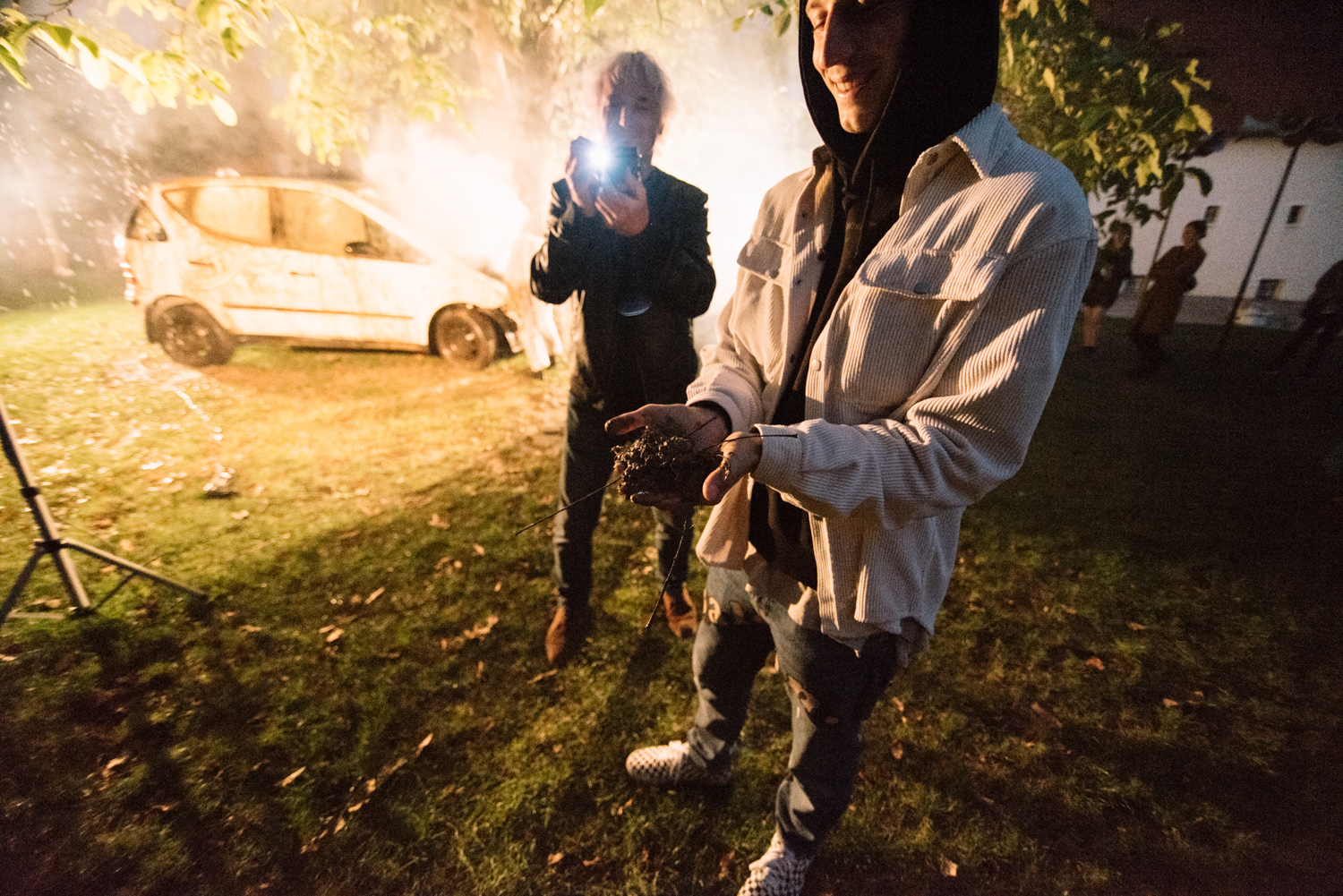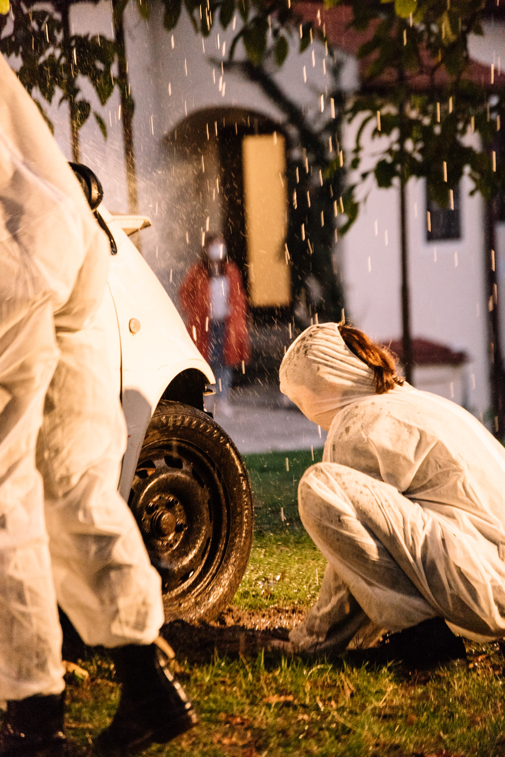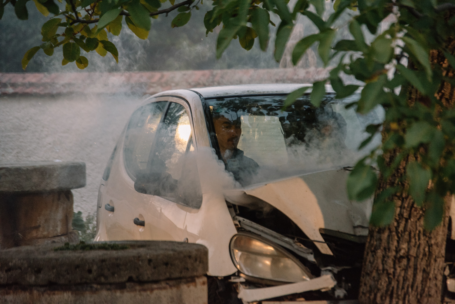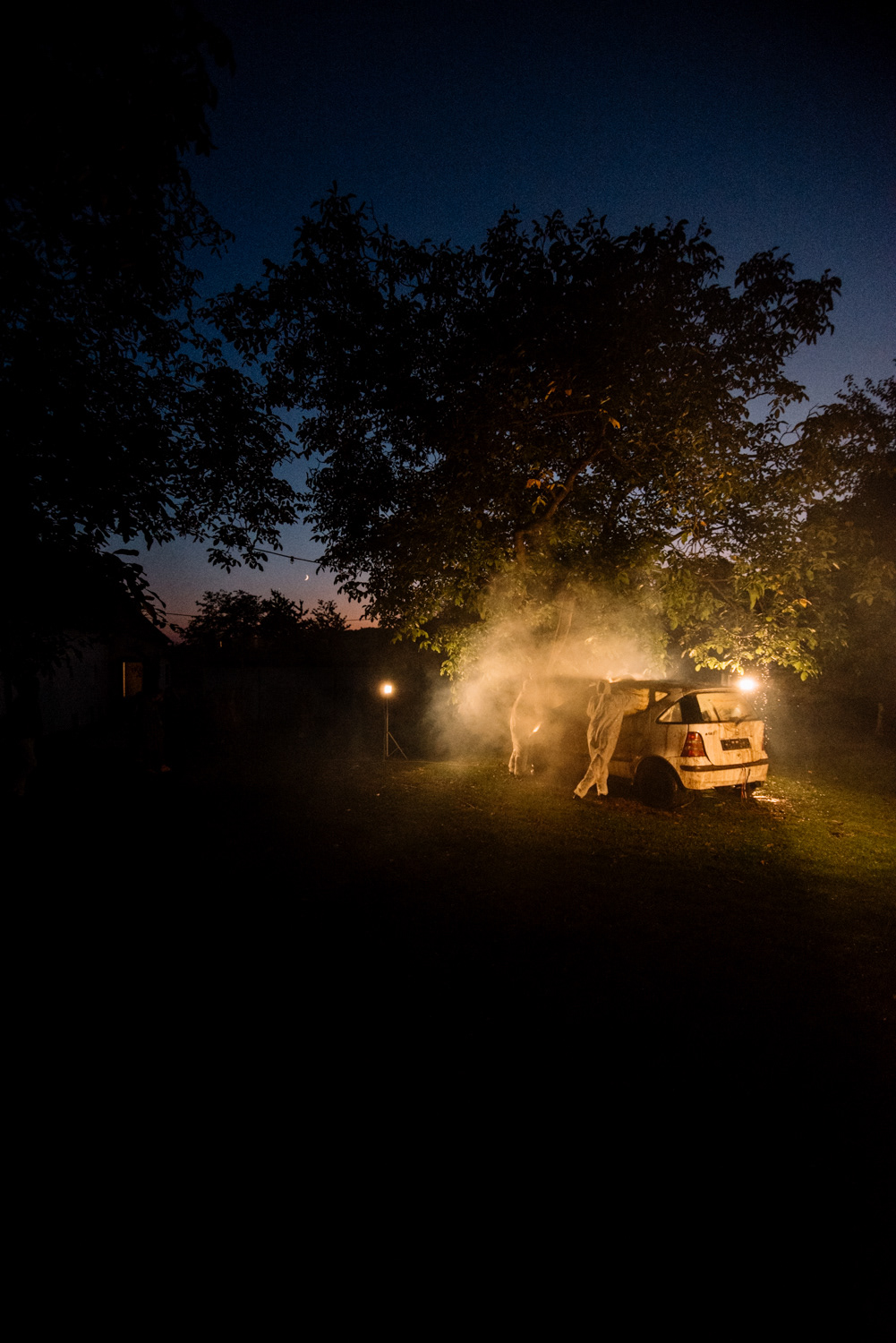Dielo pozostávalo z inštalácie nabúraného auta do stromu, pripomínajúcej filmový set, či miesto činu, krátkej textovej pasáže hrajúcej z reproduktoru ukrytého v strome, repetitívnej performance a hudobného doprovodu. Performerky a performeri v kostýmoch zámerne pomalými pohybom obaľovali auto hlinou, občas až eroticky, napodobujúc a obracajúc sexistické videoklipy so ženami umývajúcimi autá a symbolicky tak urýchľovali jeho rozklad. Dielo otváralo existenčné otázky o smrti jednotlivca a skrz ne aj otázky smrti iných živých organizmov (stromu) a načrtávalo tak možnosť menej antropocentrického a ekologickejšieho pohľadu na svet.