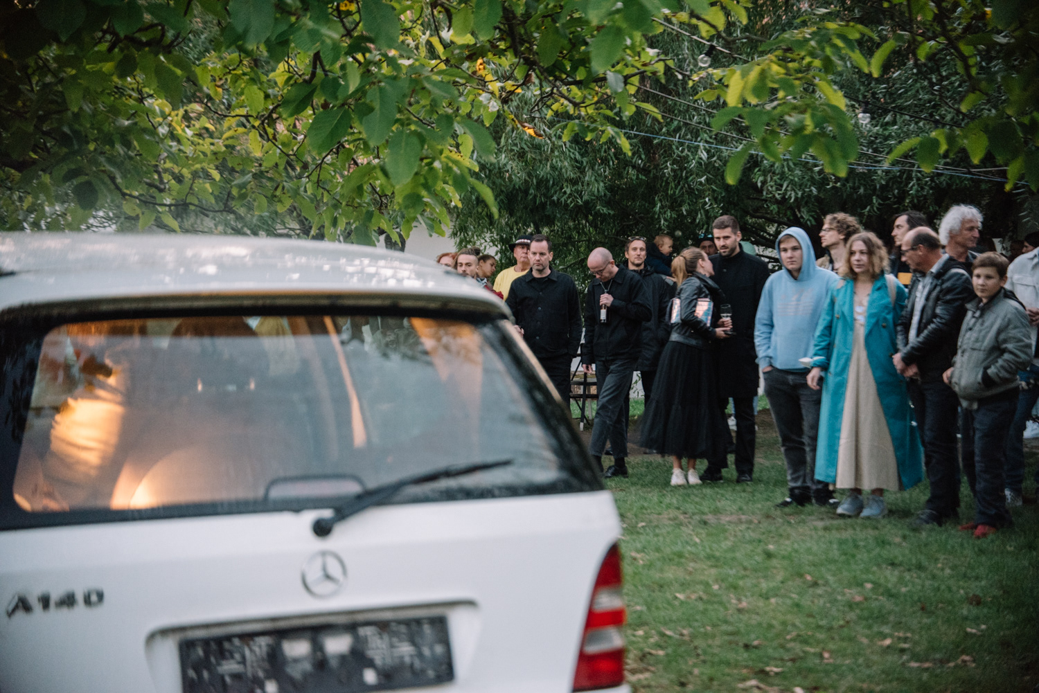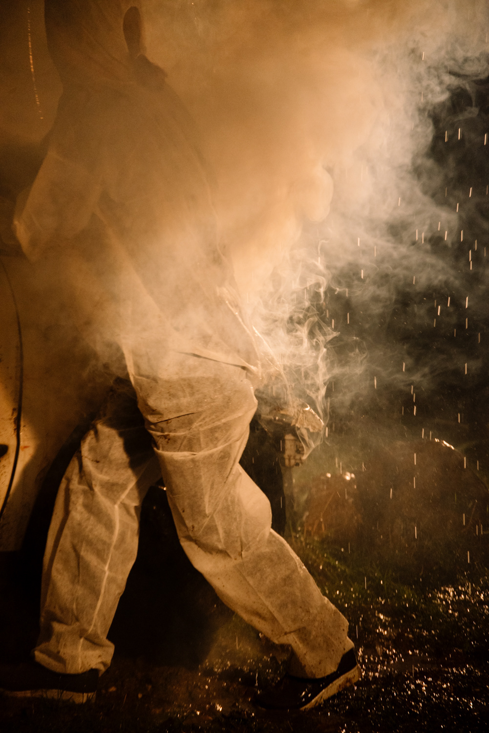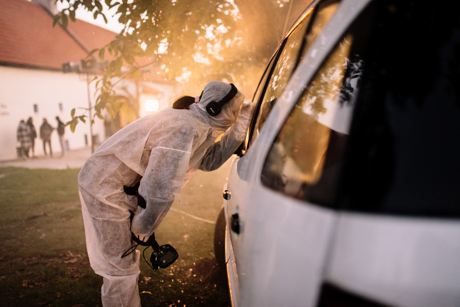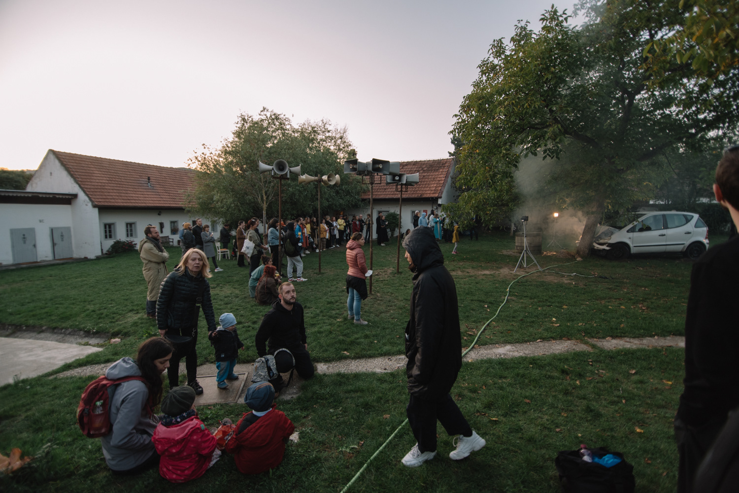 Dielo pozostávalo z inštalácie nabúraného auta do stromu, pripomínajúcej filmový set, či miesto činu, krátkej textovej pasáže hrajúcej z reproduktoru ukrytého v strome, repetitívnej performance a hudobného doprovodu. Performerky a performeri v kostýmoch zámerne pomalými pohybom obaľovali auto hlinou, občas až eroticky, napodobujúc a obracajúc sexistické videoklipy so ženami umývajúcimi autá a symbolicky tak urýchľovali jeho rozklad. Dielo otváralo existenčné otázky o smrti jednotlivca a skrz ne aj otázky smrti iných živých organizmov (stromu) a načrtávalo tak možnosť menej antropocentrického a ekologickejšieho pohľadu na svet.