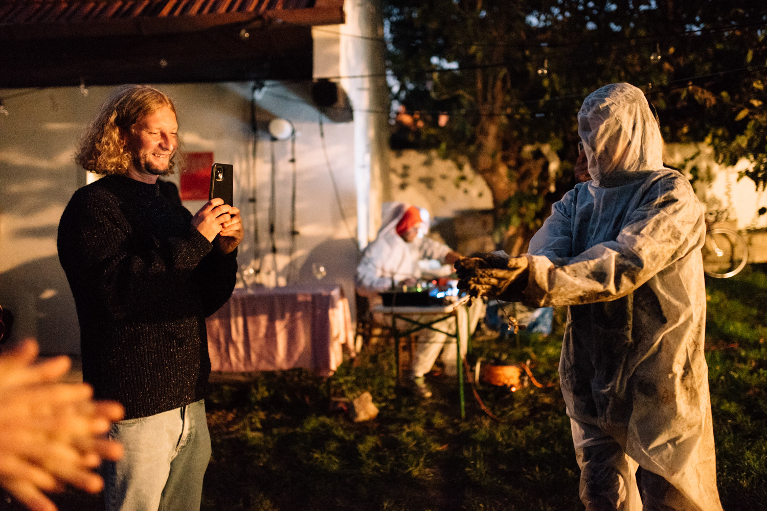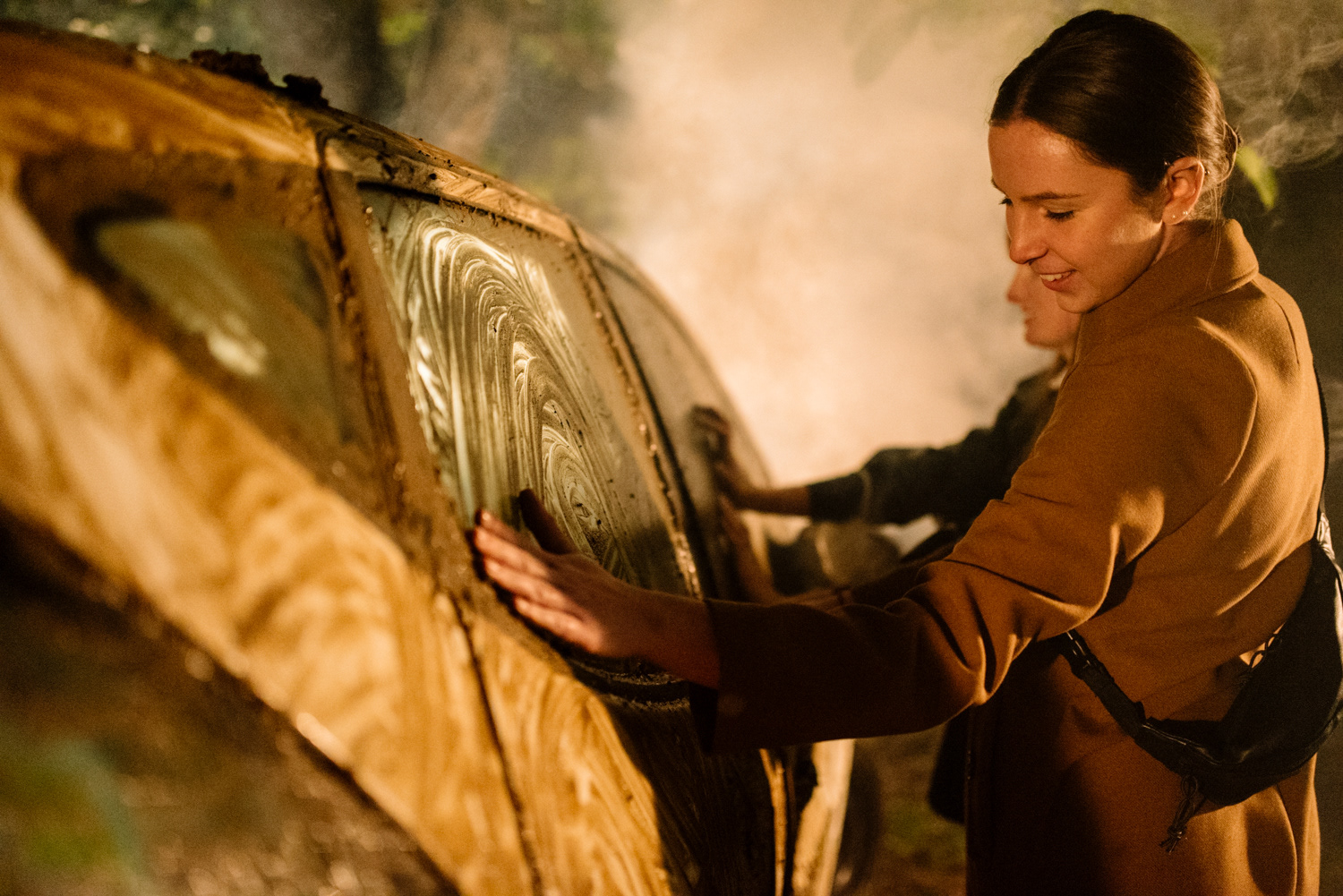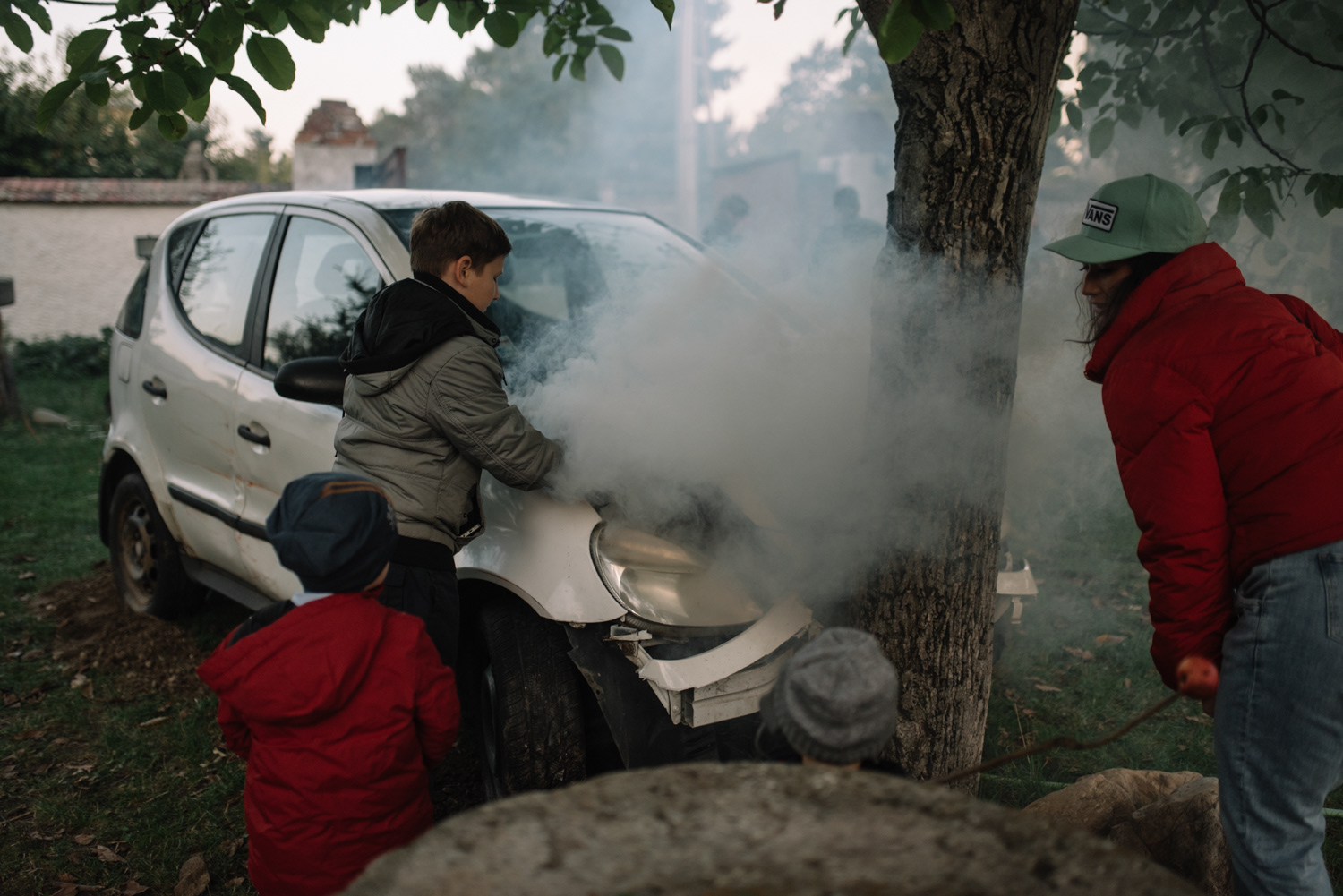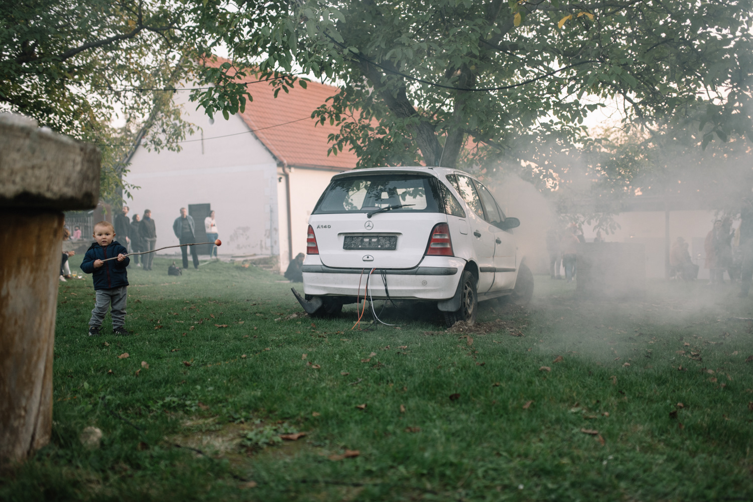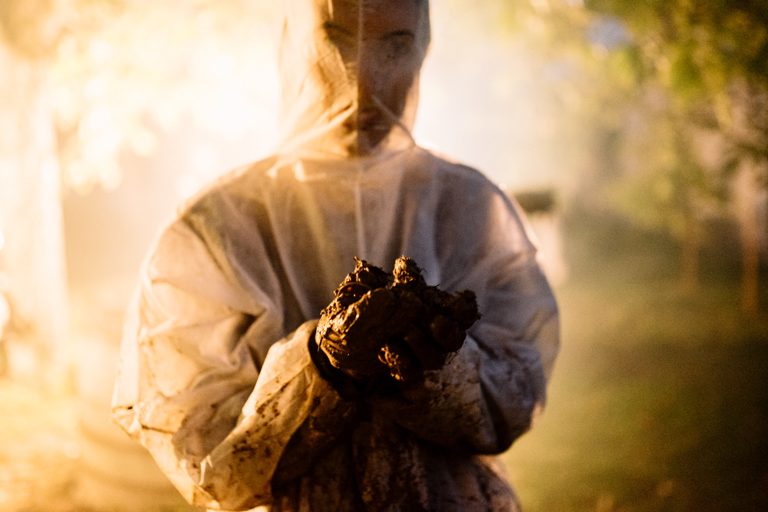 Dielo pozostávalo z inštalácie nabúraného auta do stromu, pripomínajúcej filmový set, či miesto činu, krátkej textovej pasáže hrajúcej z reproduktoru ukrytého v strome, repetitívnej performance a hudobného doprovodu. Performerky a performeri v kostýmoch zámerne pomalými pohybom obaľovali auto hlinou, občas až eroticky, napodobujúc a obracajúc sexistické videoklipy so ženami umývajúcimi autá a symbolicky tak urýchľovali jeho rozklad. Dielo otváralo existenčné otázky o smrti jednotlivca a skrz ne aj otázky smrti iných živých organizmov (stromu) a načrtávalo tak možnosť menej antropocentrického a ekologickejšieho pohľadu na svet.